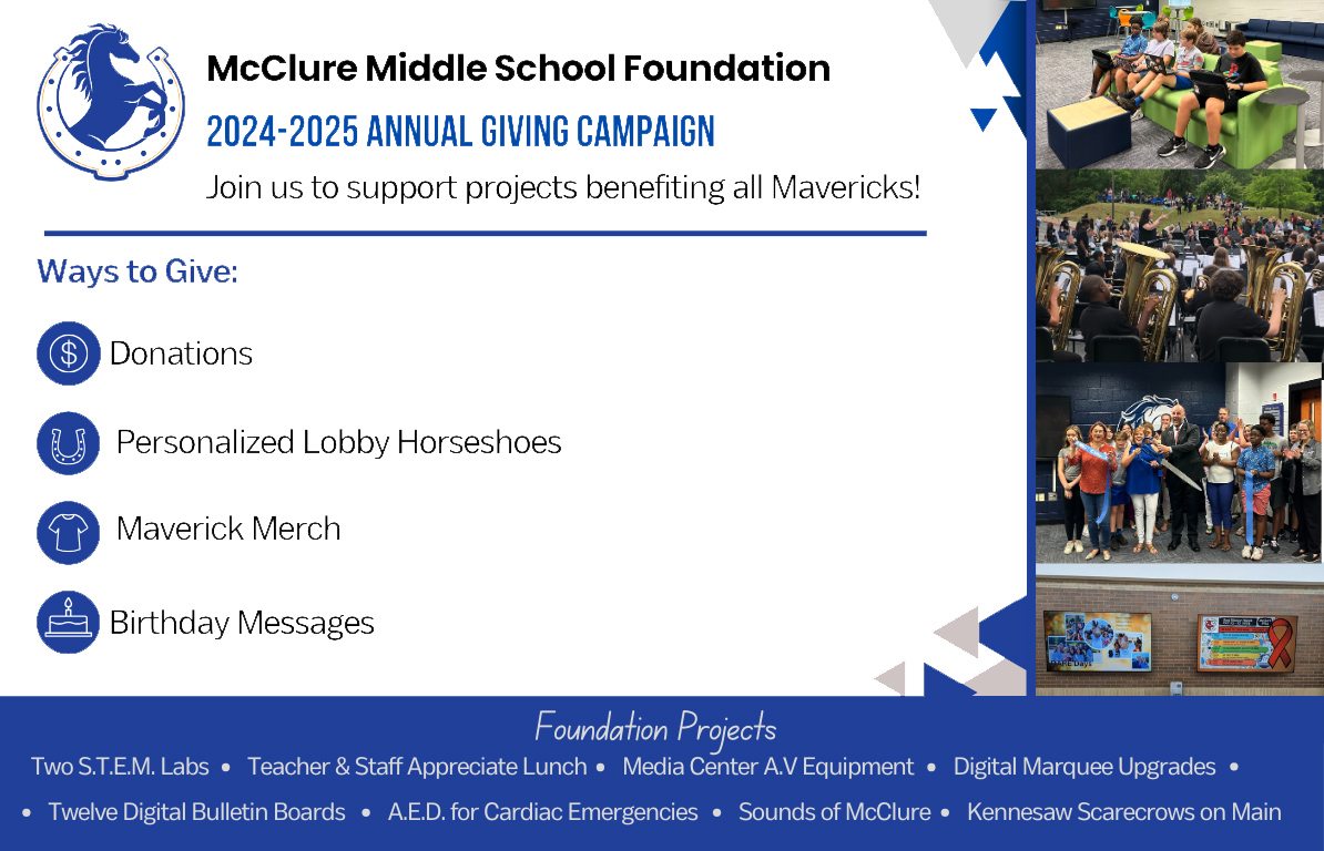The McClure Middle School Foundation is committed to creating opportunities for all McClure students by funding innovation and technology in our school.